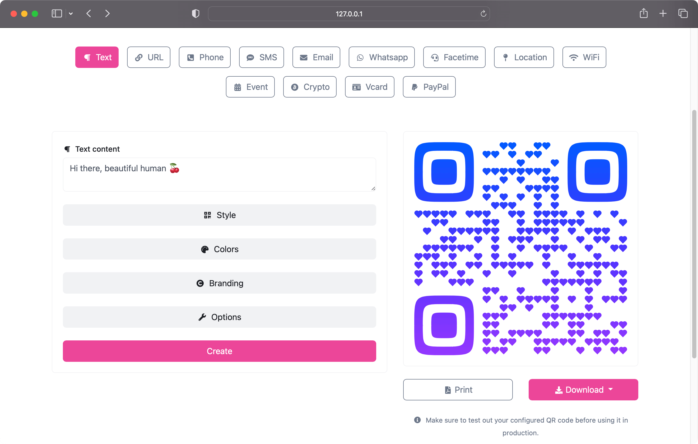 Static QR codes are fixed, meaning that all the data is directly embedded into the QR code. Once generated and printed for real-world usage, it can't be changed.